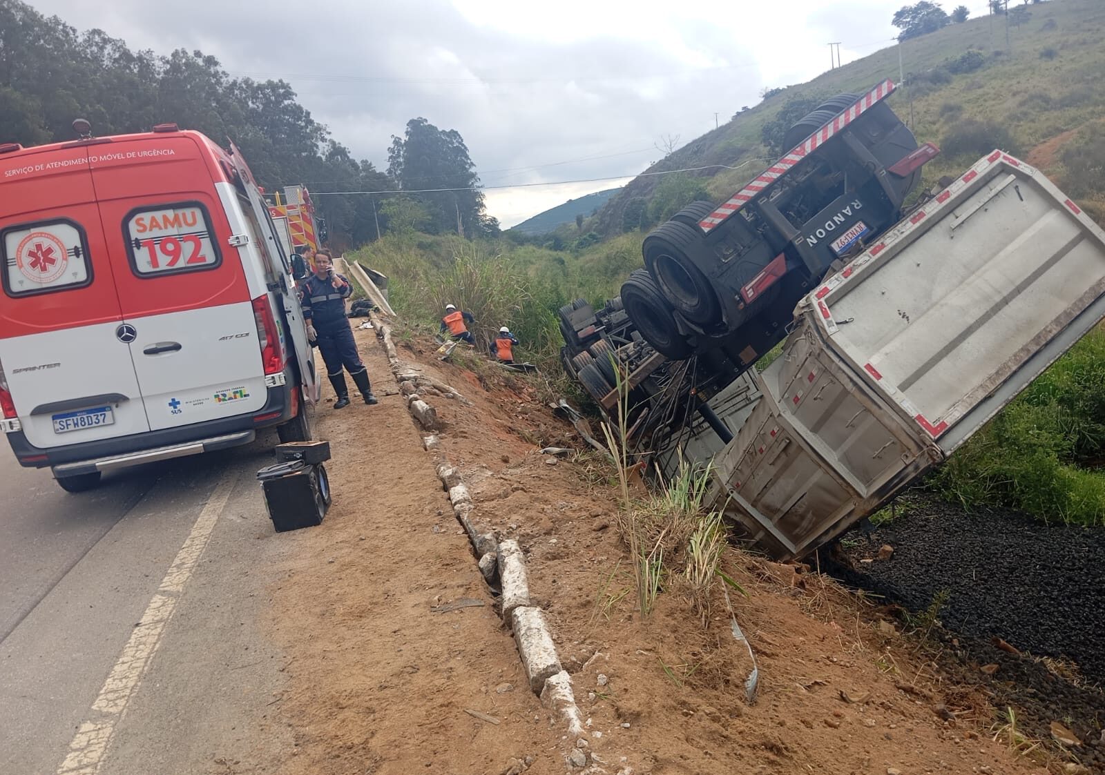 Segundo a Polícia Militar, no local, a equipe encontrou uma carreta tombada. Segundo informações, o motorista escutou um barulho e tombou, desmaiando em seguida. Ele foi socorrido pelo Samu ao hospital. O estado de saúde não foi divulgado.