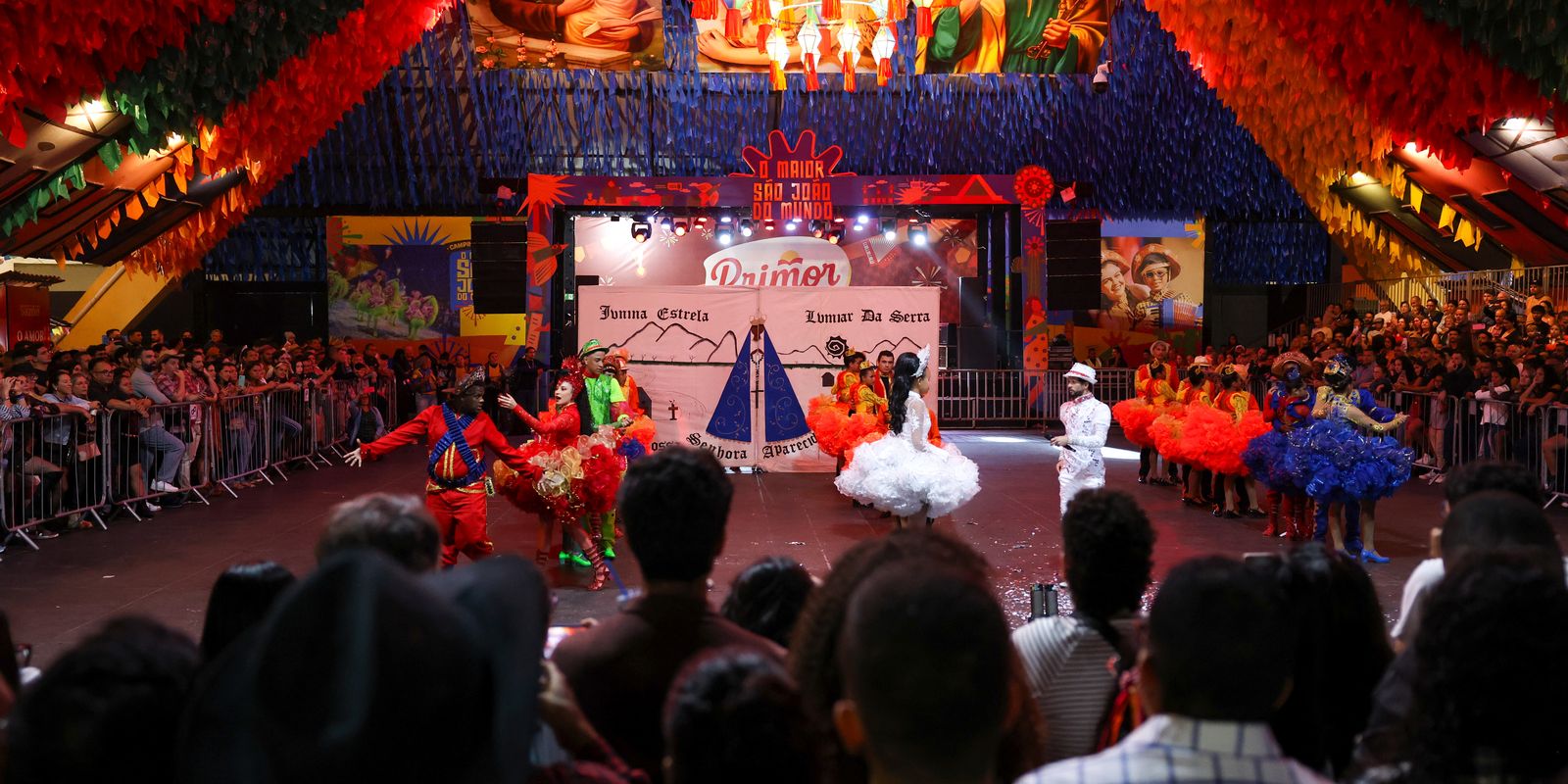 Quem circula pelo Parque do Povo encontra casais, grupos de amigos e muitas famílias. Elas estão presentes nos shows e nas arquibancadas durante as apresentações das quadrilhas juninas multicoloridas que deixam o público de olhos vidrados. A bióloga Juliana Soares, que cresceu em uma casa onde o São João sempre foi levado a sério, fez questão que a filha Maria Laura, de cinco anos, participasse da quadrilha junina infantil que se apresentou no Quadrilhódromo, local para as apresentações das quadrilhas dentro do Parque do Povo.
