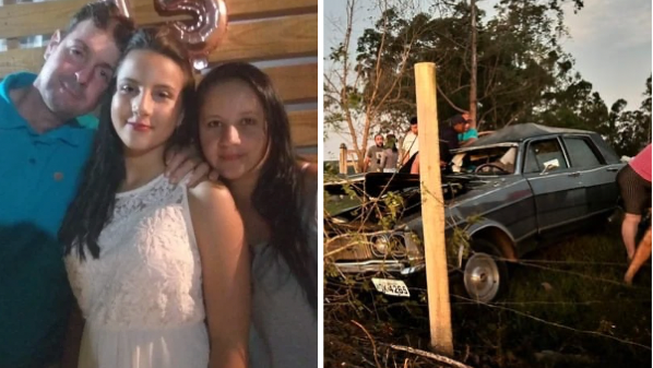 Três pessoas da mesma família morreram em um grave acidente de carro na tarde deste domingo (6), na rodovia ES 130, próximo à entrada do Córrego da Areia, em Nova Venécia. As vítimas foram identificadas pela polícia como Vagmar Ventorim, Tatiane Menon, e Victoria Menon Ventorim – pai, mãe e filha. O namorado de Victoria foi socorrido em estado grave. De acordo com o Corpo de Bombeiros, o carro bateu em uma árvore, na localidade de São Luiz Gonzaga. O acionamento foi por volta de 17h40 e a ocorrência está em andamento.