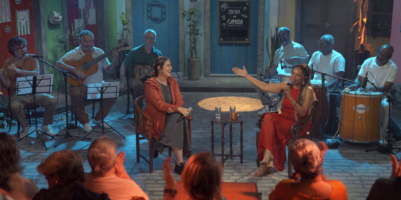 A nova temporada do Samba na Gamboa que marca a estreia de Teresa Cristina como apresentadora do programa da TV Brasil foi gravada no Teatro Ruth de Souza, no Parque Glória Maria, em Santa Teresa, na região central do Rio de Janeiro. O palco para conversas embaladas por hits é um cenário colorido que evoca uma praça na Gamboa – bairro histórico da zona portuária da capital carioca. A presença de plateia é outro destaque da atração.