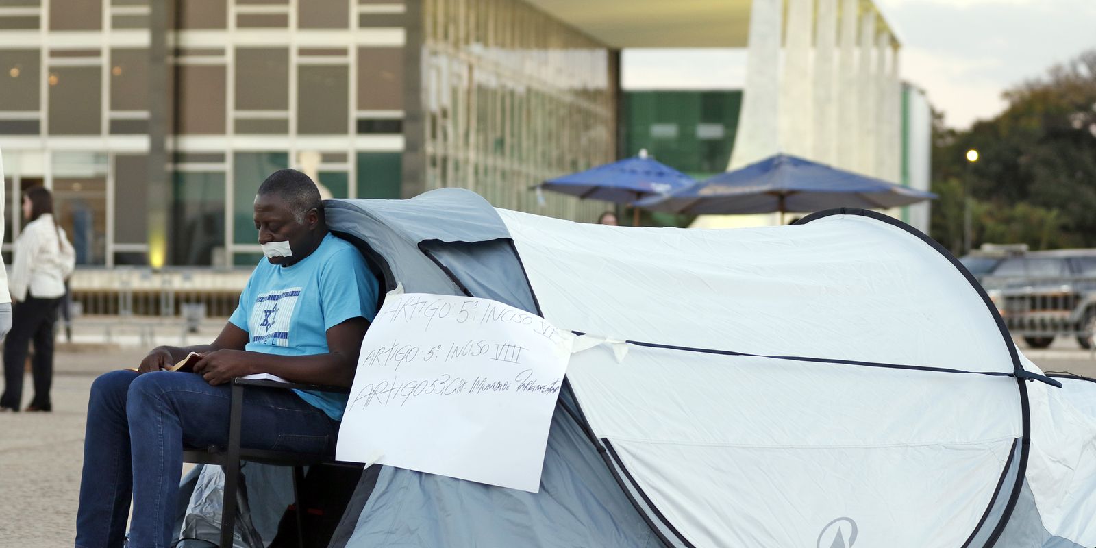 Deputado Hélio Lopes faz acampamento com uma barraca em protesto na Praça dos Três Poderes em frente ao STF – Bruno Peres/Agência Brasil