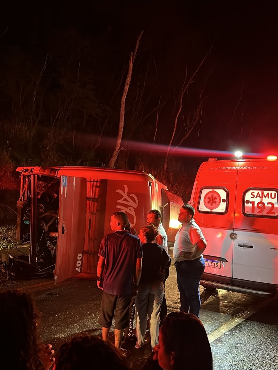Ônibus com 50 pessoas tomba, deixa dois mortos e dezenas de feridos na BR 262, no ES