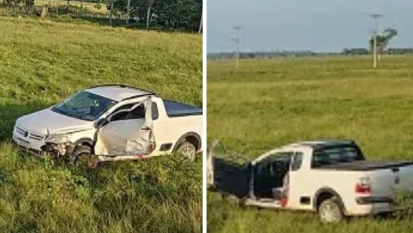 Segundo a Polícia Militar, a corporação foi acionada para atender a um capotamento. Ao chegar ao local, a equipe constatou o acidente e encontrou um veículo capotado em meio ao pasto, às margens da rodovia. O carro era conduzido por um homem e tinha uma mulher como passageira.